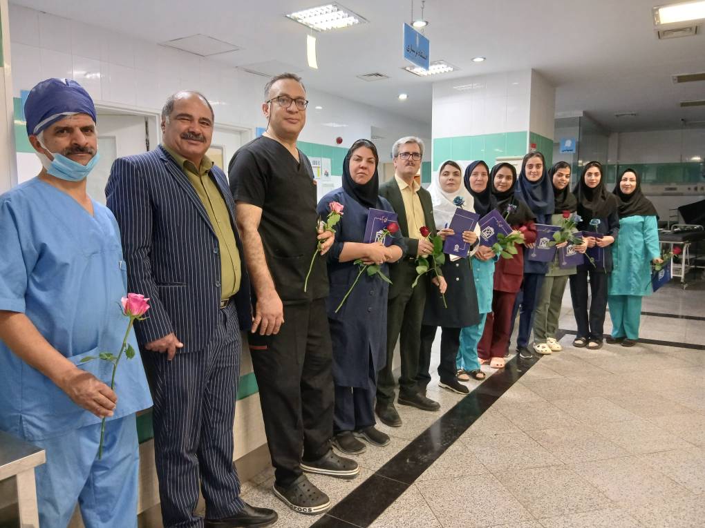 به گزارش روابط عمومی بیمارستان ثامنالحجج؛ به مناسبت ۲۳ آبان روز جهانی اتاق عمل، دکتر حاج محمدی ریاست و مدیران بیمارستان با حضور در اتاق عمل این روز را به کلیه کارکنان این واحد با اهدای گل و لوح تبریک گفتند.